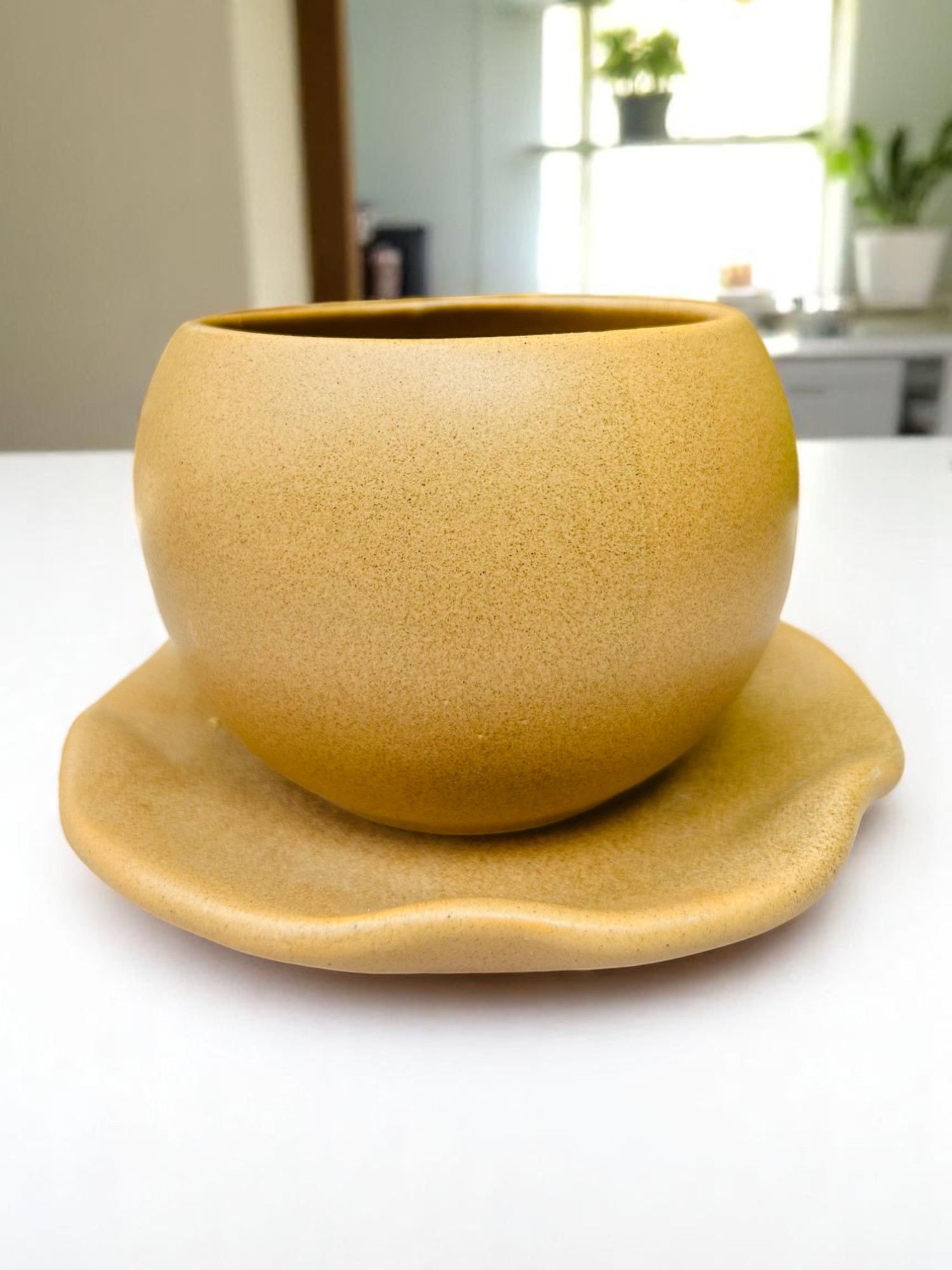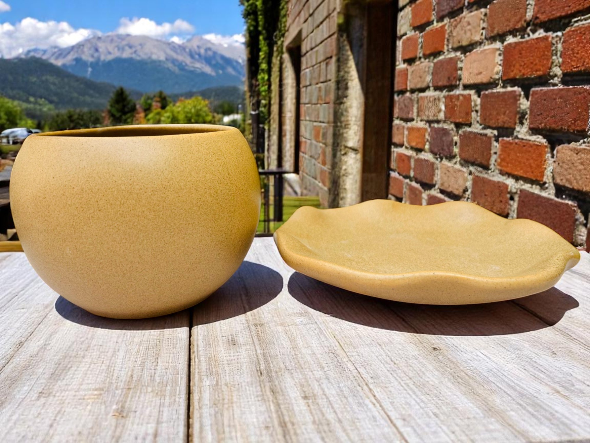 Agrega un toque de elegancia natural a tus espacios con esta maceta esférica de gres de 10×9 cm en color avellana, acompañada de su plato a juego incluido. Su diseño compacto, redondeado y artesanal es perfecto para decorar con estilo plantas pequeñas como suculentas, cactus o helechos miniatura.