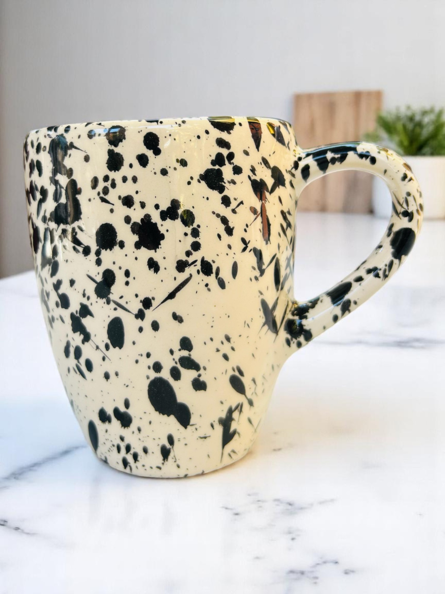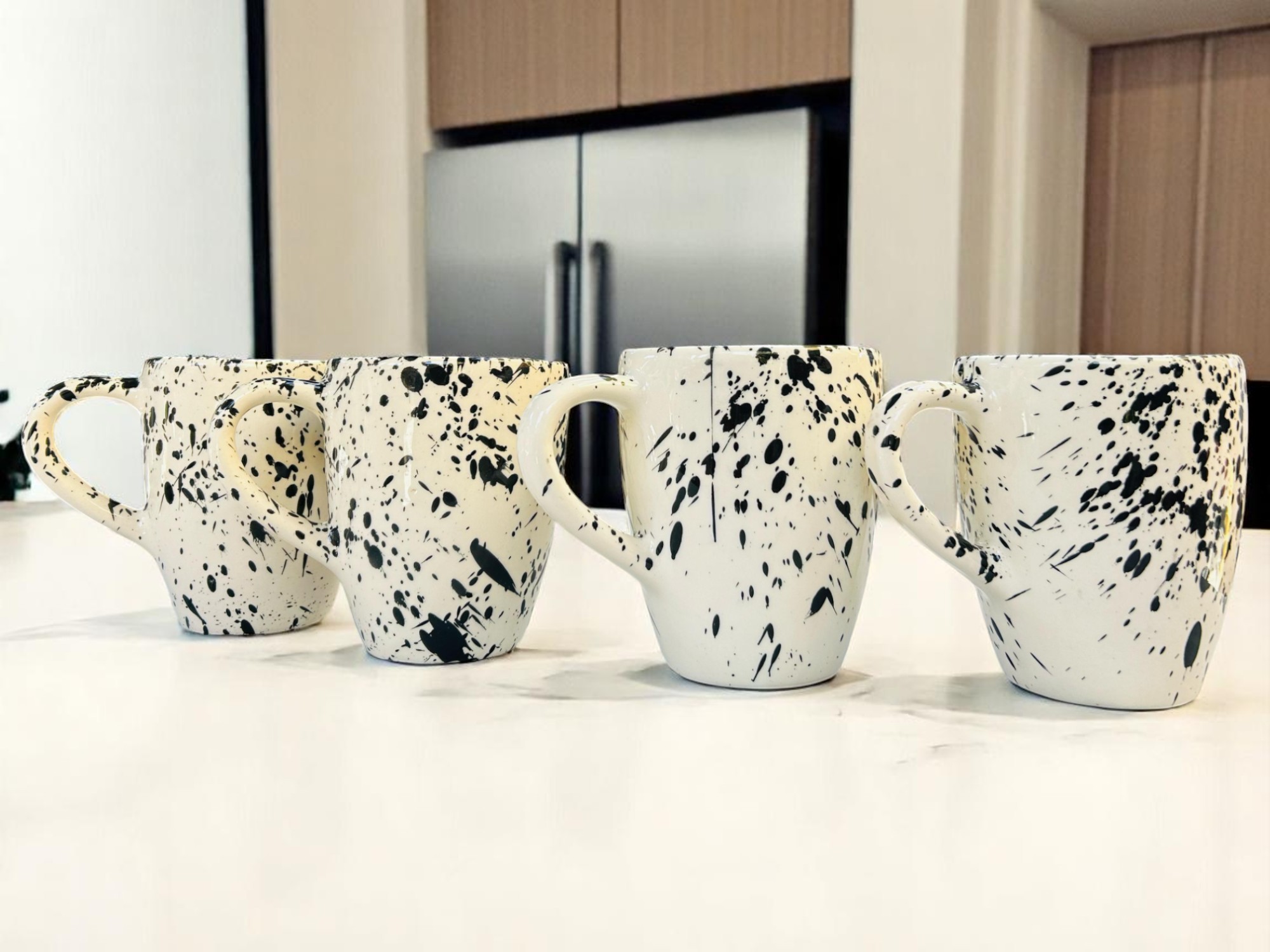 Set de 4 Tazas de Cerámica Elegante en Salpicado Negro – 500 ml – Para Café, Té o Chocolate – Diseño Moderno Bala Negra